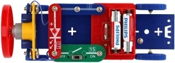 Złóż prosty pojazd z silnikiem i przełącznikiem, który dzięki śmigłu ruszy z miejsca. Dzieci od razu widzą, jak obwód elektryczny wprawia model w ruch.