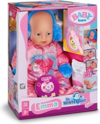 Lalka BABY born Emma o wysokości 43 cm jest stworzona dla małych opiekunów. Ubrana w stylowy zimowy kombinezon z miękkimi puchatymi nausznikami i rękawiczkami, jest gotowa na każdą przygodę. Realistyczny wygląd i możliwości opieki wspierają odgrywanie ról i uczą empatii.