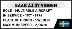 Podczas budowy docenisz czytelne i intuicyjne instrukcje, precyzyjne elementy kompatybilne z innymi markami oraz bogactwo funkcjonalnych detali: otwierany kokpit, ruchome powierzchnie i składane podwozie. W zestawie znajduje się także figurka pilota z wyposażeniem oraz kolekcjonerska podstawka z tabliczką i szwedzką flagą do efektownej ekspozycji.