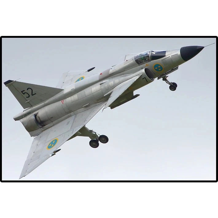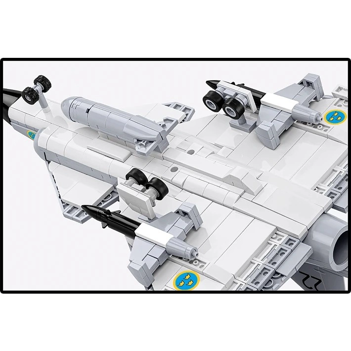 Precyzyjne odwzorowanie skrzydeł w układzie delta, powierzchni kaczki oraz podwieszanego uzbrojenia uzupełniają trwałe nadruki sił powietrznych Szwecji – bez użycia naklejek.