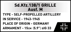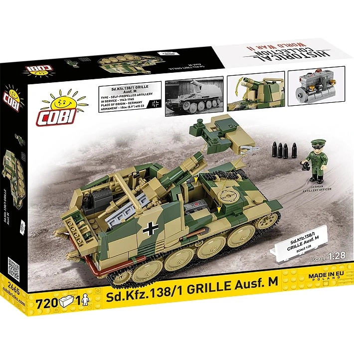 Odkryj legendarną „Wesz/Grille”, działo samobieżne oparte na podwoziu Panzer 38(t), w precyzyjnym wykonaniu z klocków COBI. Dokładne odlewy z wysokiej jakości nadrukami, kamuflaż, tabliczka i autentyczne proporcje czynią z modelu atrakcyjny egzemplarz kolekcjonerski i świetną edukacyjną zabawkę konstrukcyjną.