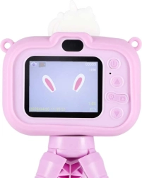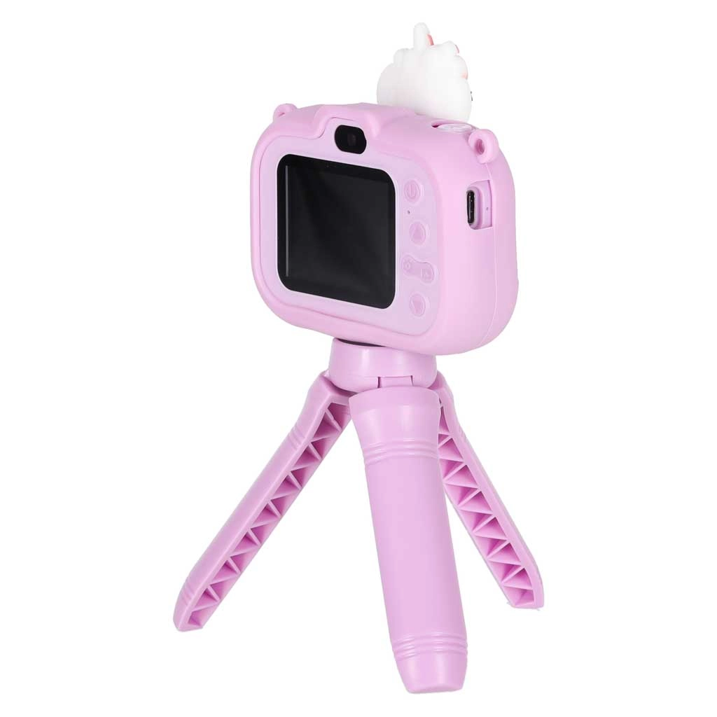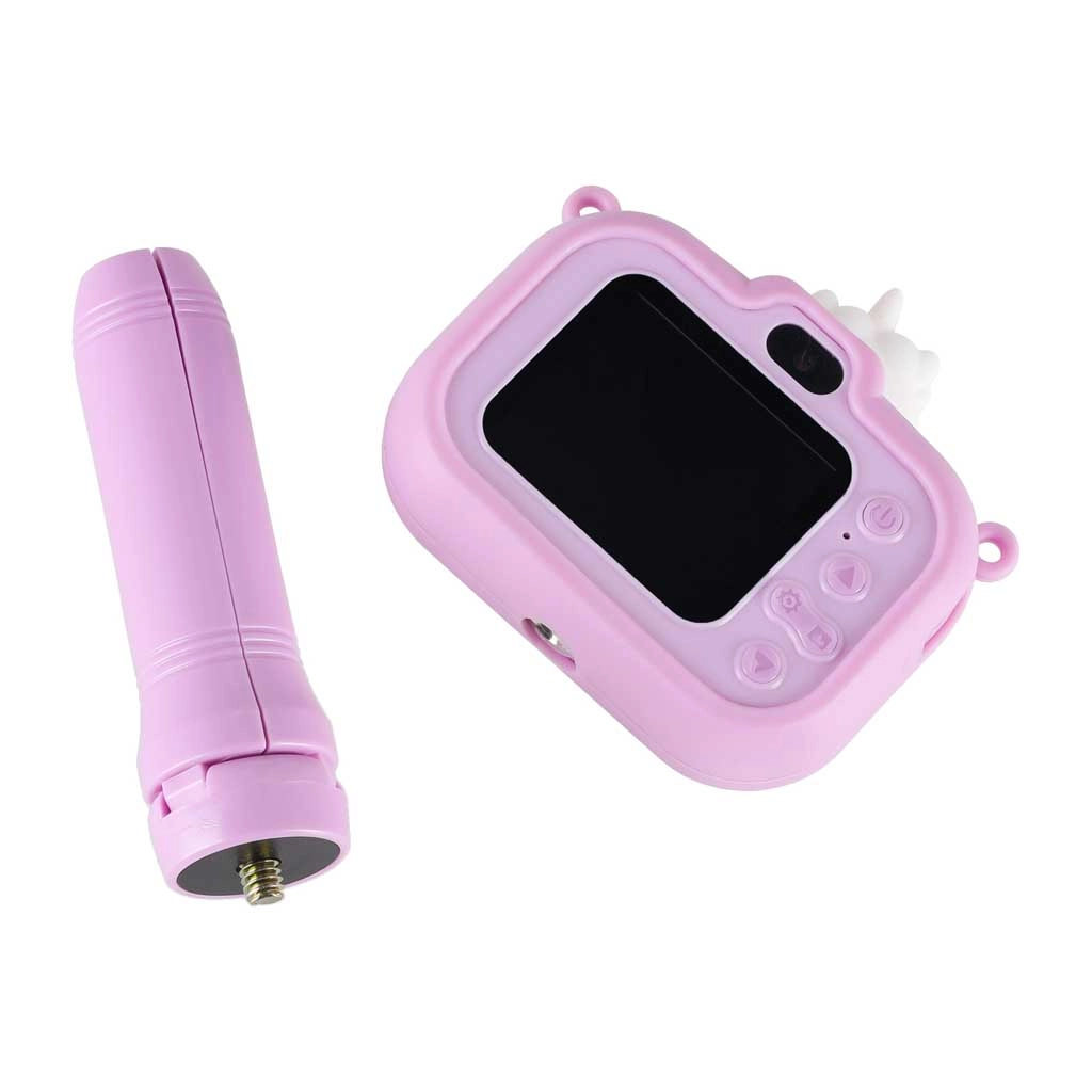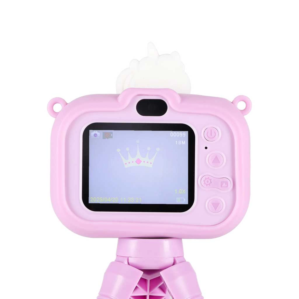 Uroczy dziecięcy aparat z motywem UNICORN i stabilnym ministatywem ucieszy małych fotografów od 3 lat. Oferuje podwójny obiektyw do łatwego robienia zdjęć i selfie, nagrywanie wideo w Full HD 1080p, czytelny wyświetlacz IPS 2,0", do 4 godzin pracy oraz silikonowe etui dla pewnego chwytu. W zestawie znajduje się regulowany pasek i kabel USB do ładowania.