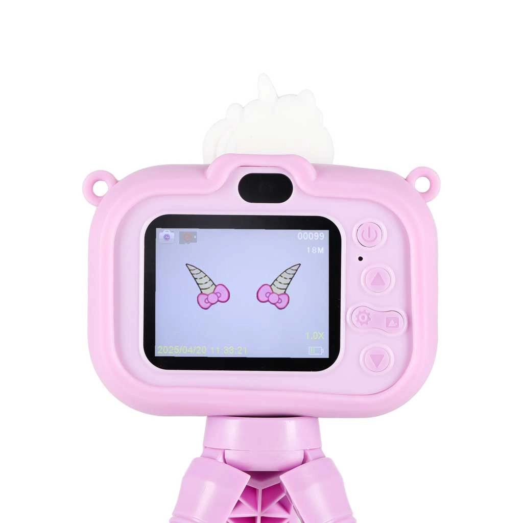 Dziecięcy cyfrowy aparat z motywem UNICORN zaprojektowano tak, aby był bezpieczny, wytrzymały i prosty w obsłudze. Kolorowy interfejs, proste przyciski i zabawne funkcje pobudzają kreatywność dzieci i zachęcają do odkrywania świata fotografii oraz wideo.