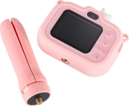 W zestawie znajduje się praktyczny mini statyw, który można używać także jako ręczny grip. Pomaga dzieciom pewnie trzymać kamerę i robić ostrzejsze zdjęcia oraz nagrania.