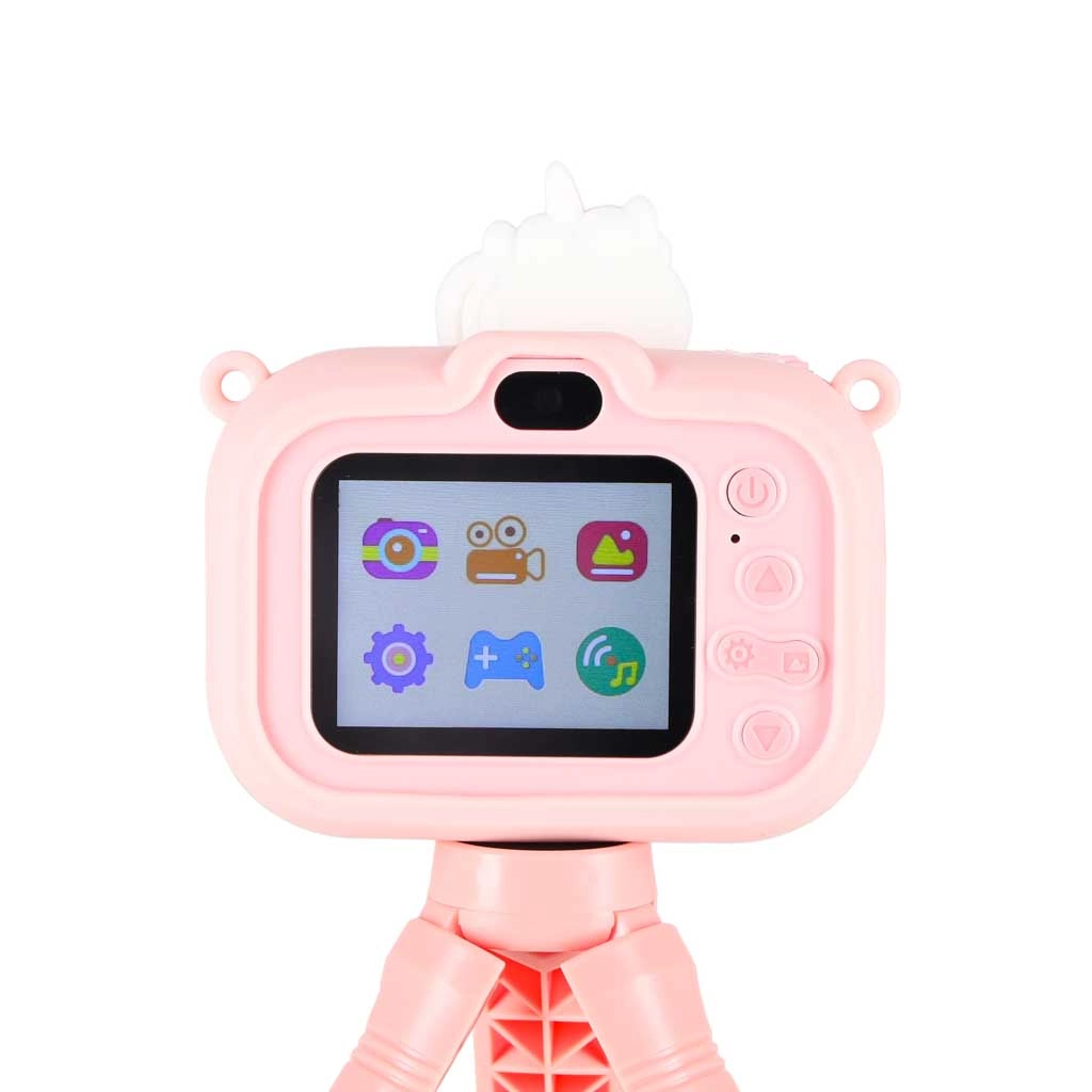 Podaruj dzieciom zabawny start w świecie fotografii. Ten lekki i wytrzymały dziecięcy aparat w różowym kolorze z motywem jednorożca ma czytelny wyświetlacz IPS 2,0", nagrywa wideo w rozdzielczości 1080p, a dzięki podwójnemu aparatowi radzi sobie z selfie i klasycznymi zdjęciami. Przyjemne w dotyku silikonowe etui chroni przed uderzeniami i nadaje figlarny wygląd.