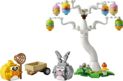 Wprowadź do domu wiosenny nastrój z zestawem LEGO Wielkanocny zajączek, kurczątko i zbieranie jajek dla dzieci od 8 lat i dorosłych. Zbuduj kolorowe drzewko z pisankami, urocze zajączek, kurczątko oraz wózek do zbierania jajek – idealną kreatywną dekorację i rodzinny projekt na świąteczny czas.