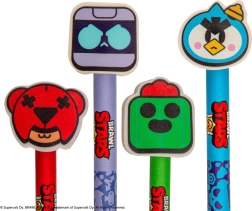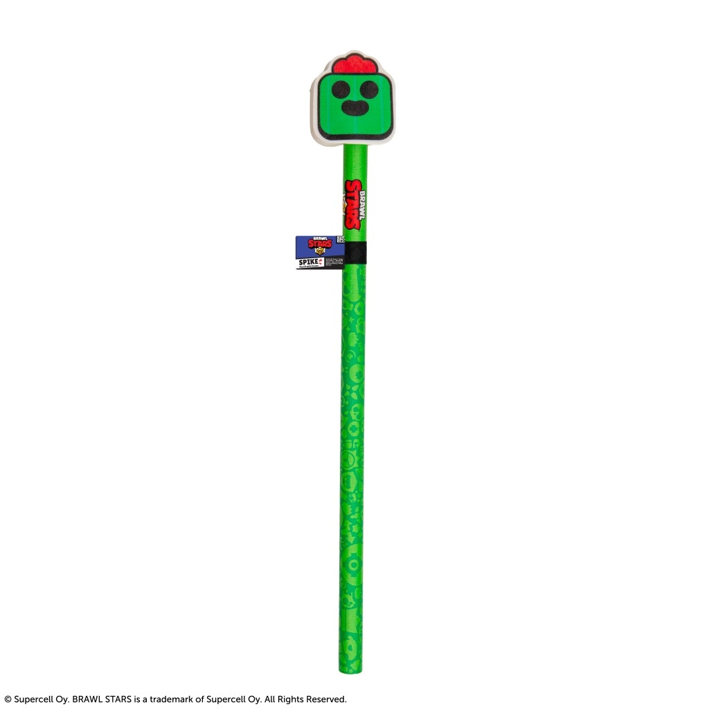 Ten ołówek z gumką ucieszy wszystkich małych i dużych fanów gry Brawl Stars. Wyróżnia się wyrazistym zielonym designem inspirowanym postacią Spike oraz dopracowanymi motywami z gry, które nadają przyborowi do pisania zabawny charakter. Na korpusie ołówka nadrukowano oficjalne czerwone logo, potwierdzające licencjonowane pochodzenie.