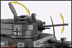 Otwierane włazy, regulowana armata, zdejmowana wieża i pokrywa silnika oraz realistyczne gąsienice zapewniają świetną zabawę przy budowie i grze.