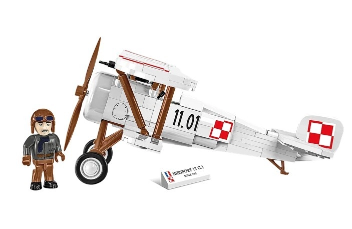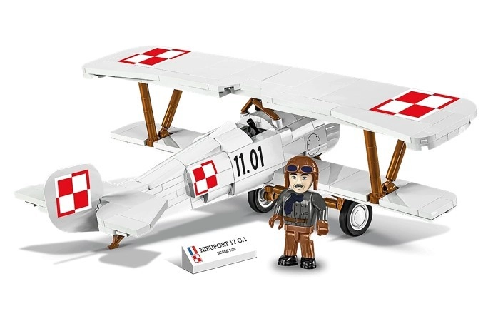 - Zestaw do budowy samolotu Nieuport 17 C.1, figurka pilota, stojak ekspozycyjny z tabliczką