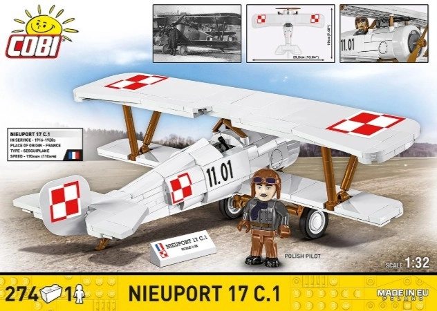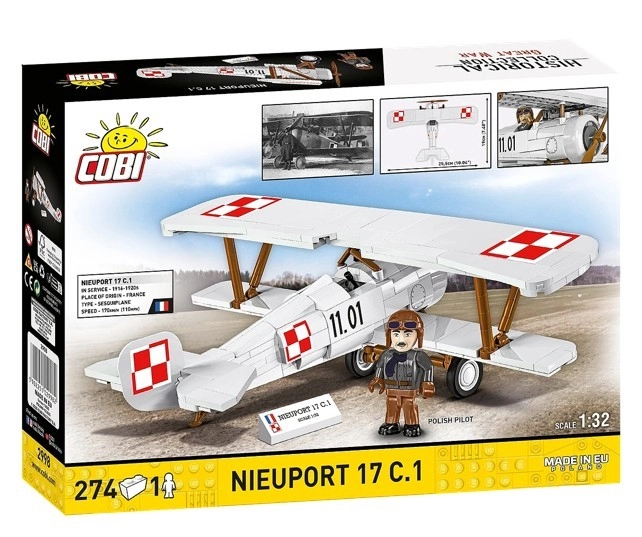 Zbuduj legendarny francuski myśliwski dwupłatowiec Nieuport 17 C.1 w polskich oznaczeniach. Zestaw z 274 elementów oferuje autentyczne nadruki bez naklejek, dopracowaną konstrukcję seskwioplanu, minifigurkę pilota oraz podstawkę z tabliczką. Świetny wybór dla kolekcjonerów i młodych modelarzy (9+), łączący zabawę, historię i naukę.