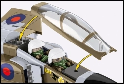 Dzięki realistycznym funkcjom i trwałym nadrukom model świetnie sprawdzi się zarówno do ekspozycji, jak i interaktywnej zabawy. W zestawie znajduje się stojak z kolekcjonerską tabliczką oraz uproszczone figurki pilotów RAF z maskami tlenowymi – idealne uzupełnienie kokpitu.