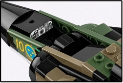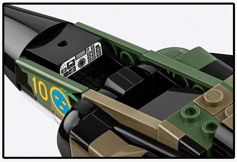 Dzięki ruchomym powierzchniom sterowym, obracającym się kołom i bogatemu wyposażeniu – w tym kontenerom z amunicją kasetową Bombkapsel 90 – model świetnie sprawdza się zarówno do zabawy, jak i na ekspozycję. W zestawie znajduje się zmodyfikowana figurka pilota oraz stabilna, regulowana podstawka z tabliczką nazwy, skali i szwedzkiej flagi.