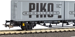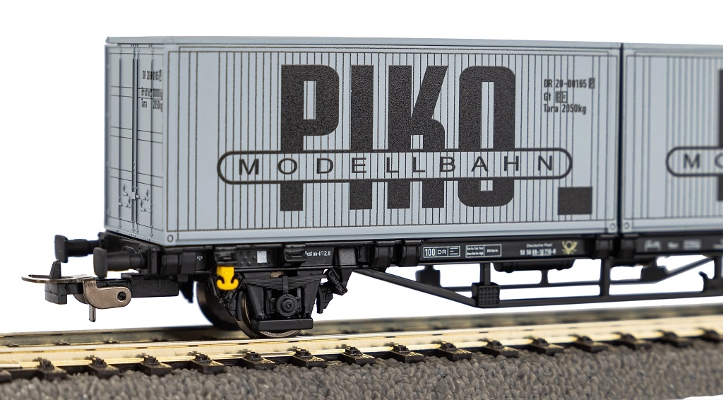 Model wagonu kontenerowego z motywem „VEB PIKO” wiernie odwzorowuje wagon Deutsche Reichsbahn z epoki IV (ok. 1970–1990). Dzięki precyzyjnemu nadrukowi, ostrym detalom ramy i wózków oraz autentycznym napisom to doskonały wybór dla kolekcjonerów i aktywnych modelarzy. W zestawie znajdują się już zamontowane 2× 20' kontenery, które nadadzą Twojemu składowi towarowemu realistyczny charakter.
