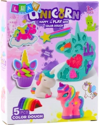 W zestawie znajduje się modelina w 5 kolorach, formy z motywami jednorożców, motyli i dekoracji oraz narzędzie w kształcie gwiazdy do precyzyjnego tworzenia. Wszystko wykonane z bezpiecznych materiałów odpowiednich dla dzieci i zapakowane w pudełko prezentowe – świetny pomysł na urodziny lub święta.