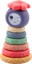 Ta miękka sensoryczna piramida łączy zabawę i naukę w jednym. Każdy krążek ma inną fakturę, wzór i relief, które dostarczają bodźców do eksploracji dotykowej i rozwoju zmysłów. Dzieci naturalnie ćwiczą sortowanie według wielkości, uczą się kolejności i budują równowagę całej wieży.
