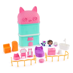 Odkryj magiczny świat GABBY'S DOLLHOUSE z kompaktowym mini domkiem, który zapewnia kreatywną zabawę, 3 figurki i bogate akcesoria. Idealny dla małych fanów serialu – rozwija wyobraźnię, opowiadanie historii i małą motorykę. Dzięki przenośnej konstrukcji świetnie sprawdzi się w domu i w podróży.