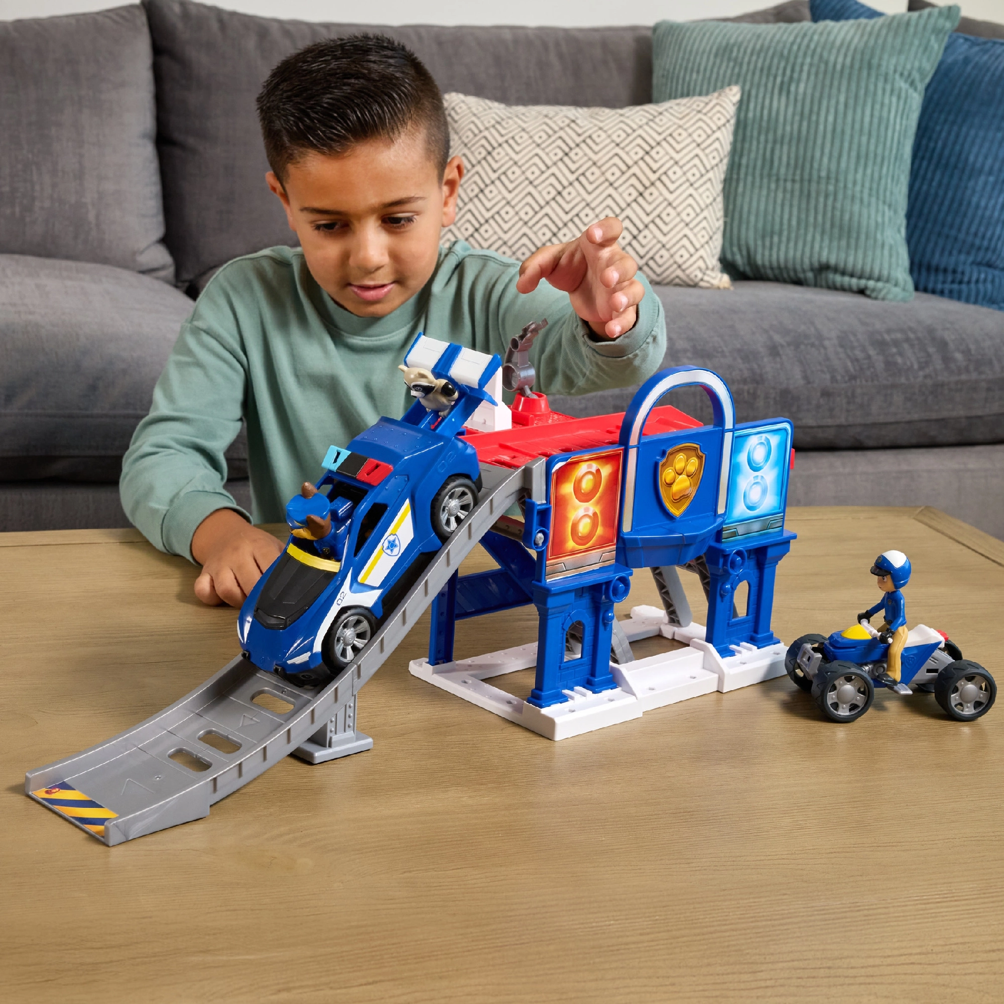 Po zakończeniu „serwisu” spuść pojazd po długiej rampie i wyrusz na ratunkową misję jak prawdziwy bohater Psi Patrol.
