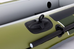 Dla łatwej obsługi ponton wyposażono w linę obwodową oraz zgrzewany uchwyt na dziobie. Szybkie pompowanie i spuszczanie powietrza umożliwiają zawory bostońskie. Praktyczne wyposażenie uzupełniają obrotowe zamki wioseł, uchwyty na wędki, wewnętrzna kieszeń/etui na drobiazgi oraz punkty montażowe pod silnik dodatkowy.