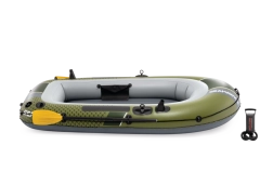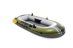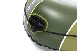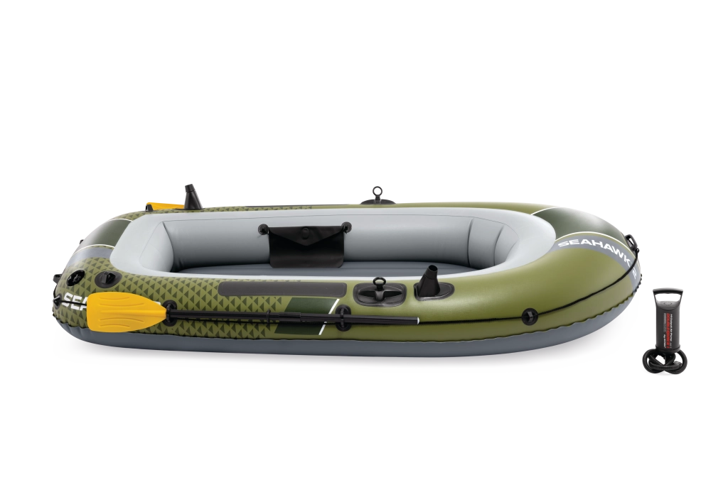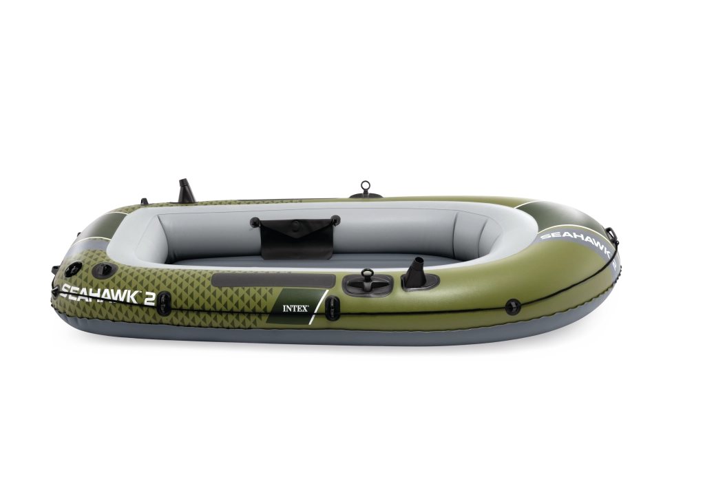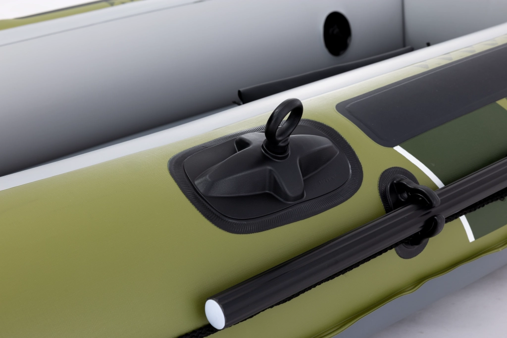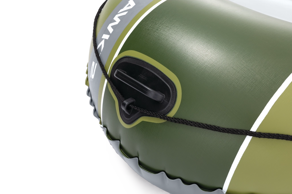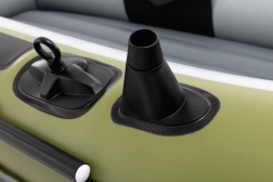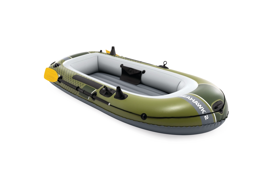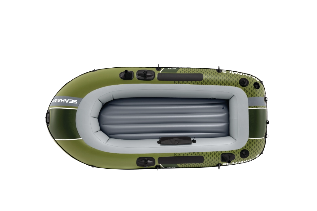 Seahawk 2 w atrakcyjnym zielono-szarym wzornictwie łączy stabilność i komfort. Wytrzymały materiał PVC jest odporny na przebicia i ścieranie, a trzy komory powietrzne, w tym wewnętrzna komora bezpieczeństwa, zapewniają spokojną żeglugę nawet w trudniejszych warunkach. Dmuchana podłoga z belką I daje poczucie sztywności i wygody podczas siedzenia i stania.