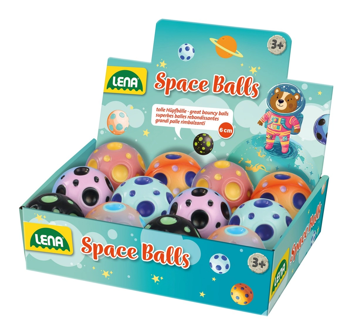 Odkryj zabawę jak z innej galaktyki z piłeczką LENA Space Ball! Miękka gumowa piłeczka o średnicy 6 cm świetnie odskakuje, wspiera ruch i koordynację i jest idealna dla dzieci od 3 lat. Dostępna w sześciu wariantach kolorystycznych, wysyłamy losowy wybór.