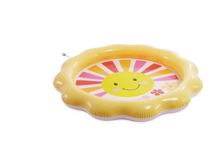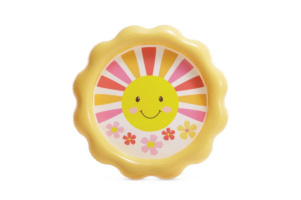 Nadmuchiwany dziecięcy basenik Słoneczne promienie zaprojektowano z myślą o radosnych zabawach w wodzie dla dzieci od około 2 lat. Falowany żółty brzeg przypominający promienie słońca oraz wesoły nadruk ze słoneczkiem i kwiatami tworzą przyjazne i zachęcające środowisko do bezpiecznego chlapania. Zintegrowana fontanna wokół obwodu aktywuje się po prostym podłączeniu węża ogrodowego, zmieniając basenik w orzeźwiające prysznicowe mini-plac zabaw.
