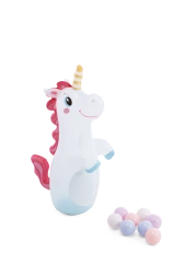 Nadmuchiwany jednorożec i 8 kolorowych piłeczek zachęcają do aktywnej zabawy, rzucania przez obręcz i rozwijania koordynacji.