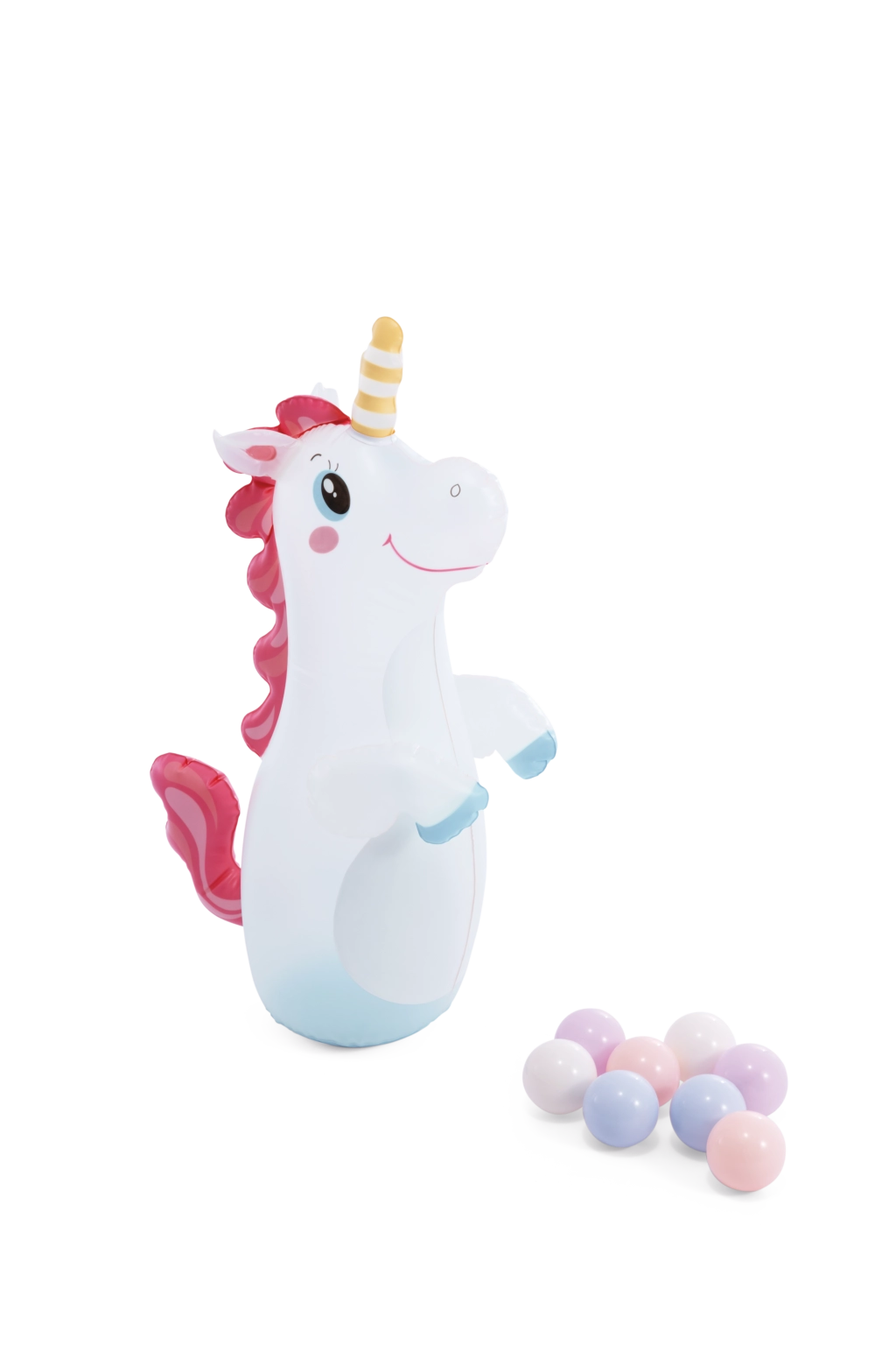 nadmuchiwany jednorożec (bokserski), obręcz do rzucania, 8 kolorowych piłeczek