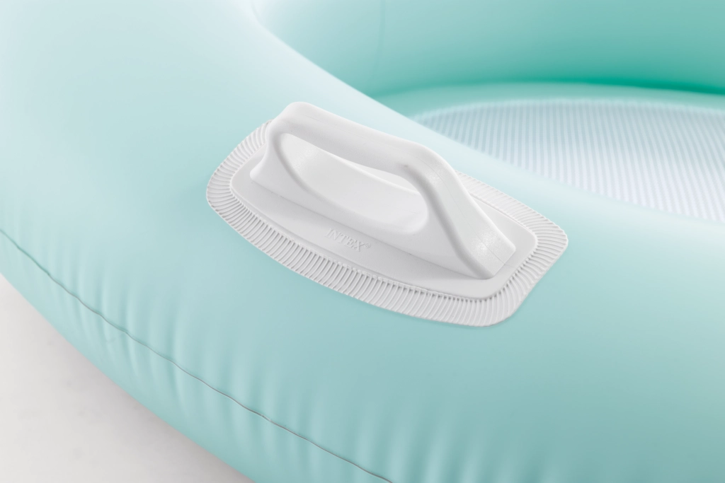 Ten nadmuchiwany fotel jest idealny do relaksu w basenie, nad jeziorem i nad morzem. Dzięki siatkowanemu siedzisku woda przyjemnie chłodzi, a wysokie oparcie z wbudowanym podparciem głowy zapewnia stabilne i wygodne siedzenie. Dwa boczne uchwyty zwiększają pewność podczas wsiadania i ułatwiają przenoszenie.