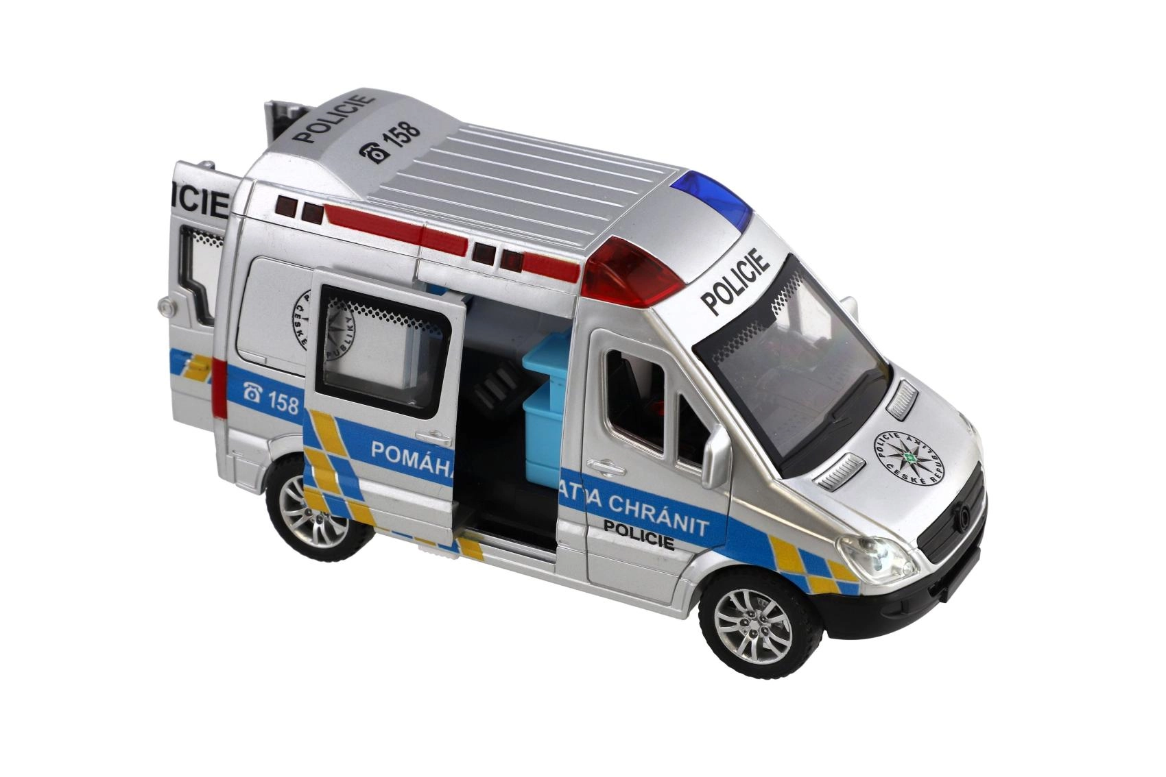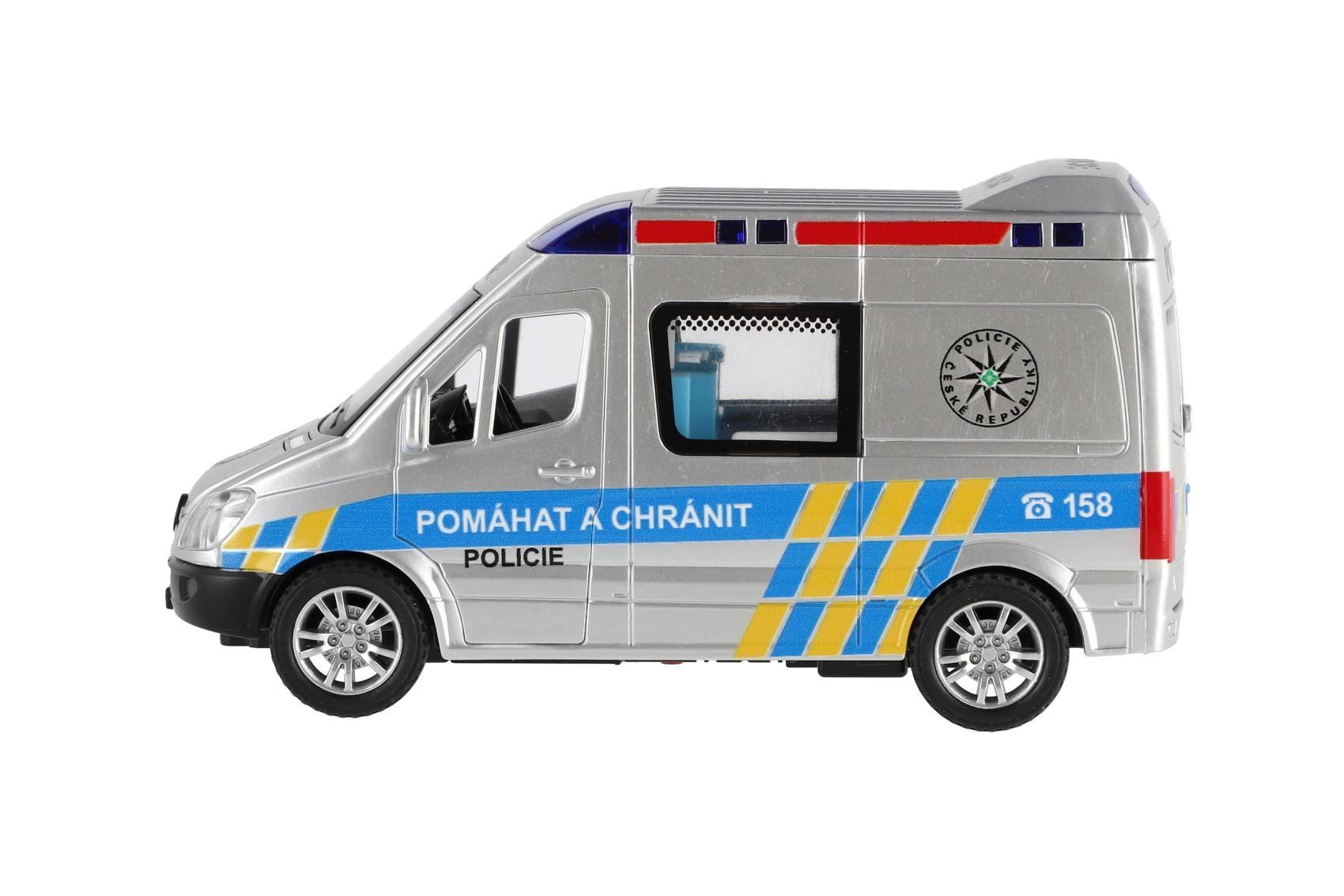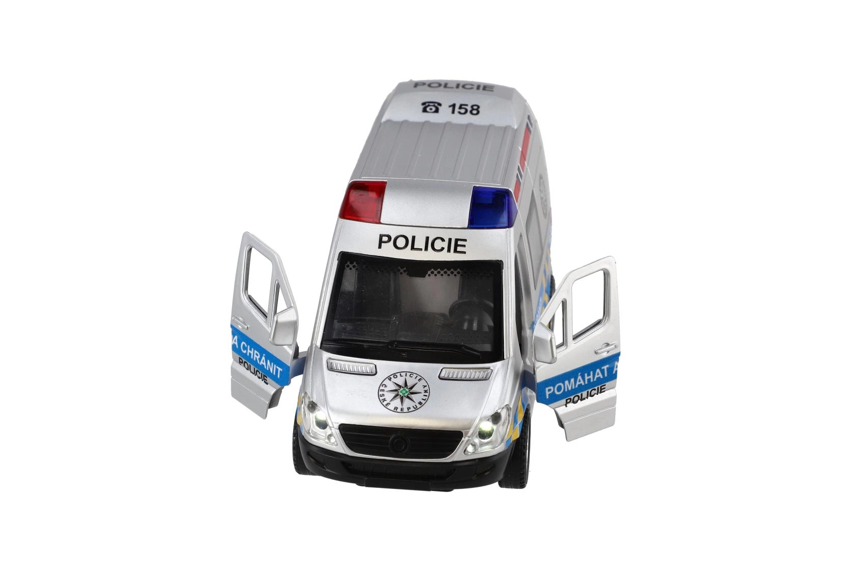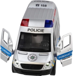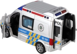Plastikowy policyjny samochód w stylistyce Policji RC zachwyci małych stróżów prawa. Oferuje efekty świetlne i dźwiękowe, napęd cierny (z napędem bezwładnościowym) dla łatwego startu oraz otwierane drzwi dla bardziej realistycznej zabawy.