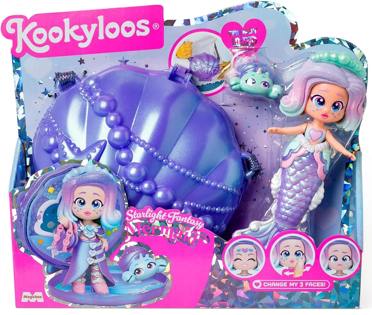 Odkryj magiczny świat z figurką KookyLoos Starlight Fantasy – uroczą syreną z błyszczącym ogonem, wymiennym strojem i stylową torebką w kształcie muszli. Zabawa 2 w 1: odpinany ogon zamienia syrenę w postać gotową do zabawy na lądzie. W zestawie unikalne morskie zwierzątko oraz tematyczne morskie akcesoria do kreatywnych opowieści.