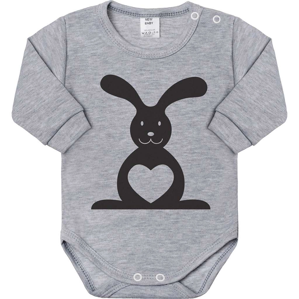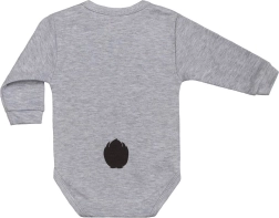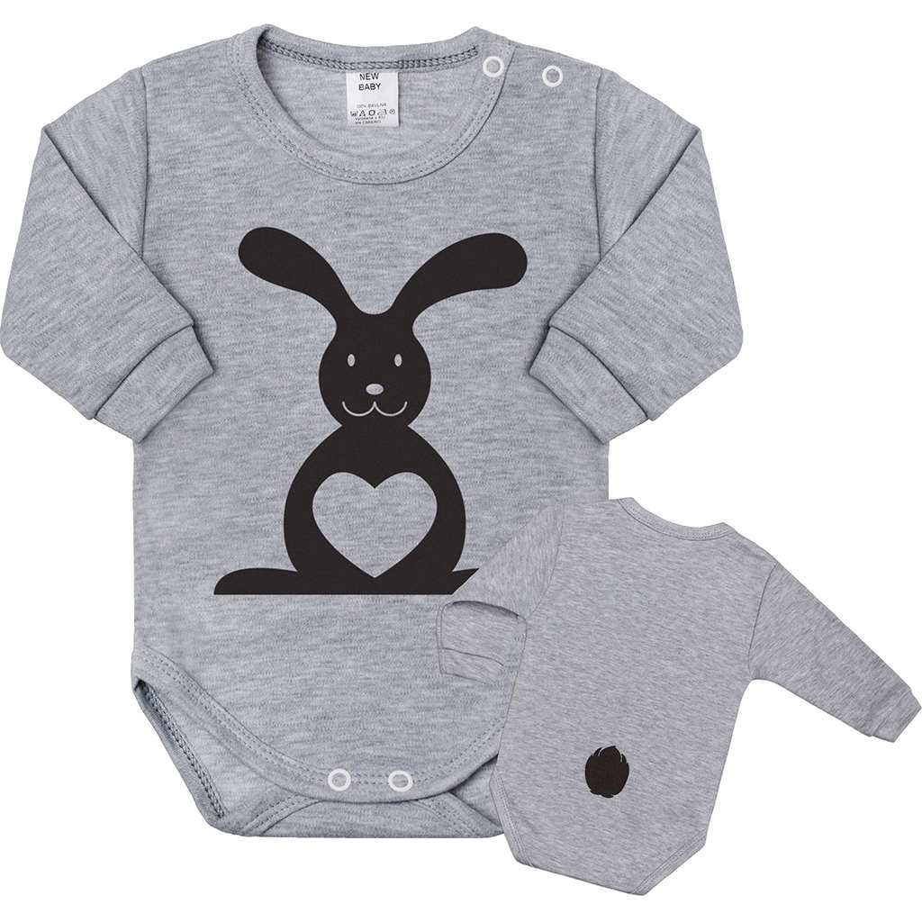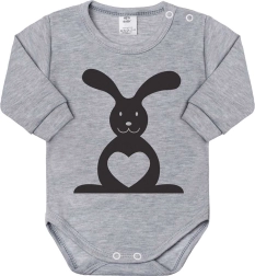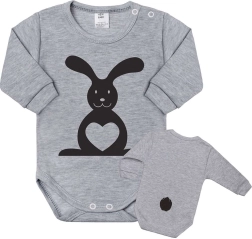 To szare body z 100% bawełny zostało zaprojektowane z myślą o codziennym komforcie maluszka. Przód zdobi duży króliczek z serduszkiem, z tyłu znajduje się drobny nadruk ogonka. Miękka dzianina i zapięcie na ramieniu oraz w kroku ułatwiają ubieranie i przewijanie.