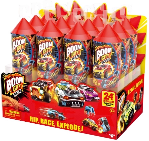 BOOM CITY RACERS dostarcza akcji, szybkości i niespodzianek w każdym opakowaniu. Wystarczy pociągnąć za pierścień, wystrzelić rakietę i patrzeć, jak super szybkie auto pędzi do przodu. Przy zderzeniu pojazd zabawnie się „rozpada”, dając wyjątkowy wybuchowy efekt, który dzieci pokochają.