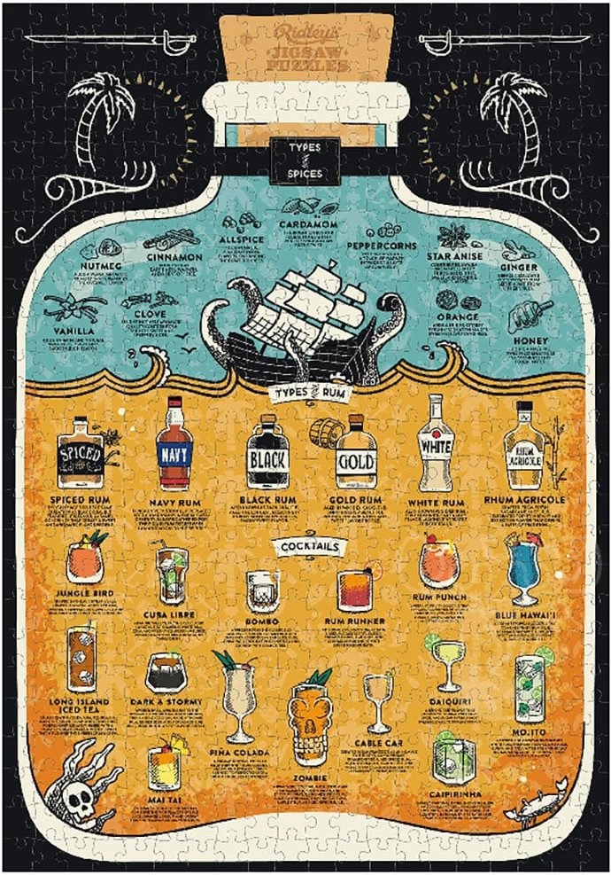 Ciesz się chwilą spokoju i skupienia ze stylowym motywem inspirowanym rumem. Puzzle to świetny prezent dla entuzjastów wysokiej jakości destylatów oraz dla wszystkich, którzy szukają przyjemnej aktywności na wieczór. Dzięki 500 elementom oferują zrównoważony poziom trudności dla początkujących i zaawansowanych układających.