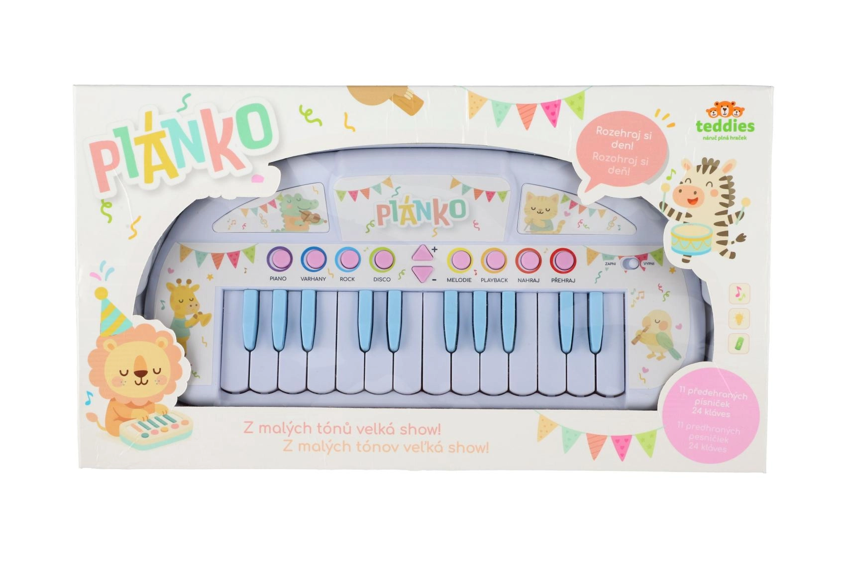 Pianinko oferuje kilka trybów muzycznych i jest zasilane bateriami, więc możesz zabrać je wszędzie – w odwiedziny, do auta czy na wakacje. Dostarczane w kolorowym, prezentowym pudełku, które ucieszy przy każdej okazji.