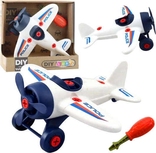 Odkryj zabawny zestaw konstrukcyjny dla małych mechaników: policyjny samolot DIY, który dzieci samodzielnie złożą za pomocą dołączonego śrubokręta. Wspiera kreatywność, małą motorykę i logiczne myślenie. Po złożeniu oferuje obracające się śmigło oraz jeżdżące kółka do dynamicznej zabawy w POLICE i akcje. Trwałe tworzywo, bezpieczne zaokrąglone krawędzie i śruby dostosowane do dziecięcych rąk.