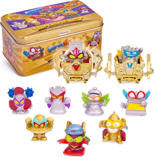 Odkryj ekskluzywny kolekcjonerski zestaw SuperThings od MagicBox Toys: złotą metalową puszkę pełną rzadkich figurek i pojazdów. W opakowaniu znajdziesz ultrarzadkie figurki, złote i srebrne edycje oraz parę złotych aerowagonów dla jeszcze większej porcji zabawy w Kaboom City.