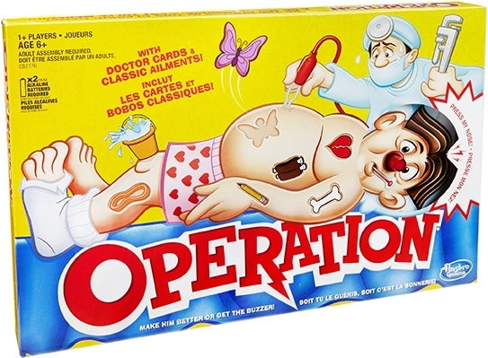 Wypróbuj swoje umiejętności chirurgiczne z grą Operacja. Używając pęsety, usuwaj 12 śmiesznych dolegliwości z Sama i unikaj ostrzegawczego brzęczenia, aby stać się zwycięzcą. Gra jest idealna zarówno dla jednego, jak i wielu graczy, oferując rozrywkę dla całej rodziny.