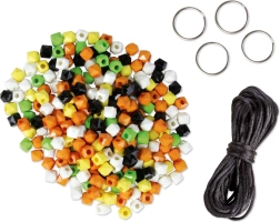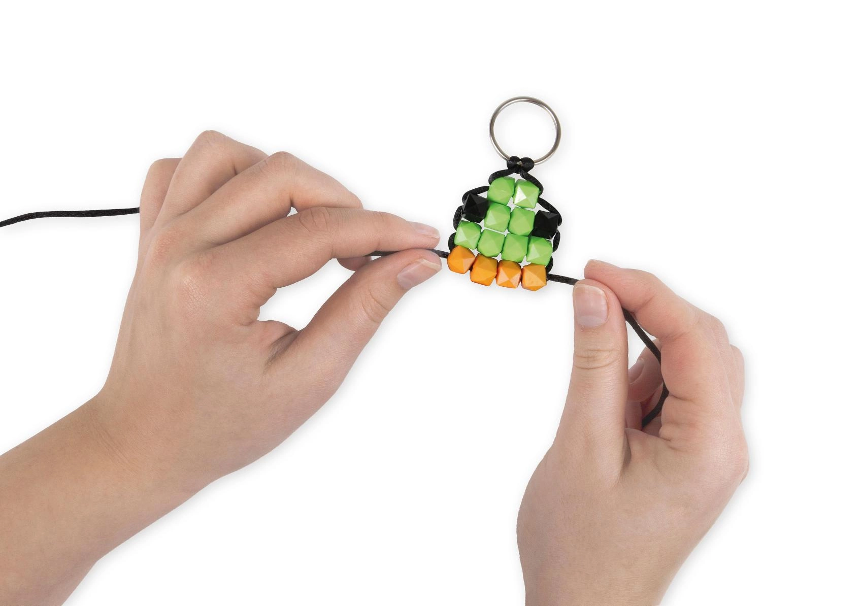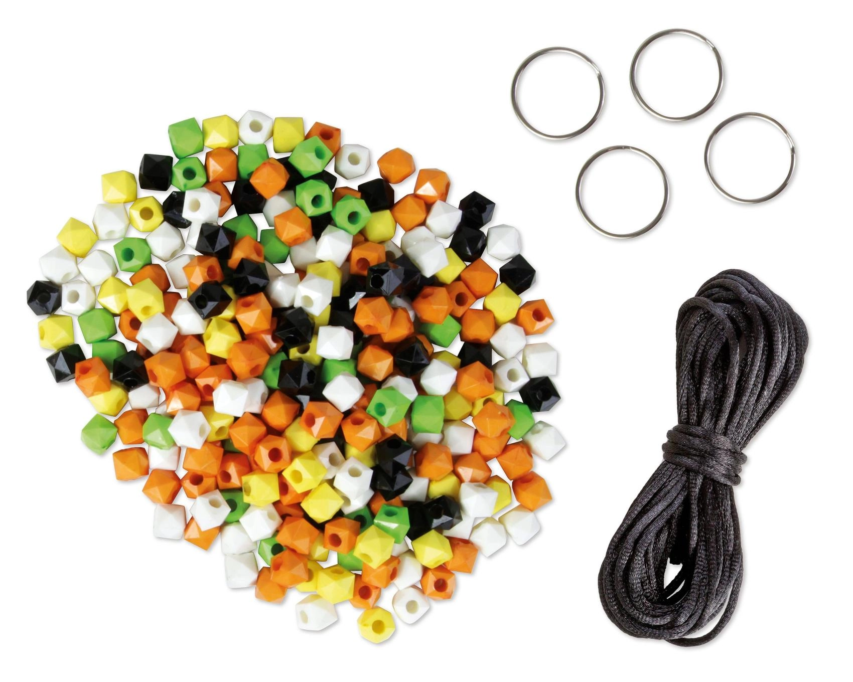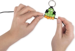 W opakowaniu znajdziesz 250 modnych koralików w żywych kolorach, czarny sznurek do nawlekania oraz 4 metalowe kółeczka do wykończenia breloczków. Proces jest prosty i intuicyjny – wystarczy nawlekać według wzoru, a w krótkim czasie stworzysz stylowe talizmany.