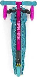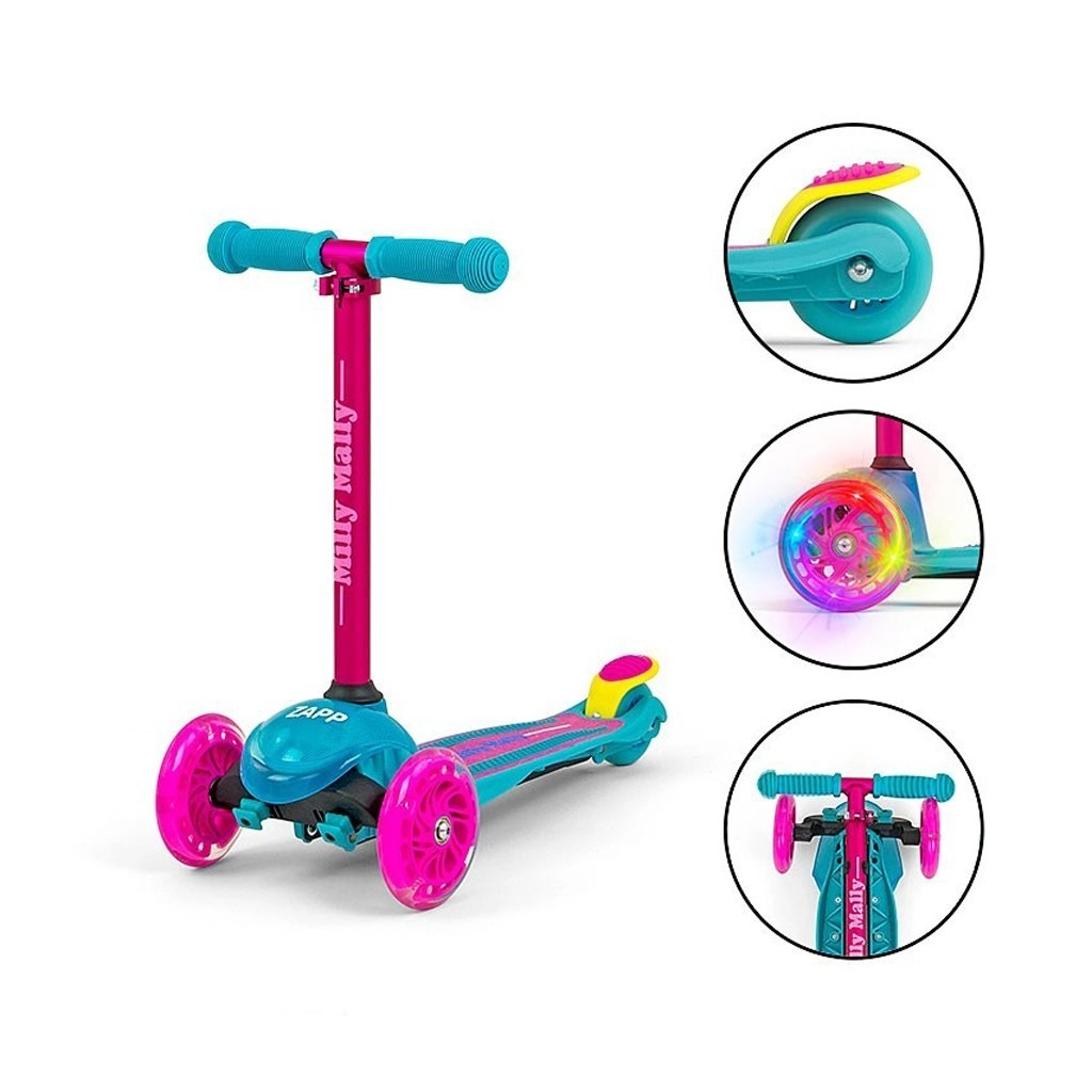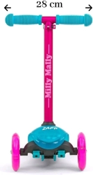 Szukasz pierwszej hulajnogi, która pomoże w nauce równowagi i doda dziecku pewności? Model MILLY MALLY Zapp z trzema kołami zapewnia doskonałą stabilność i bezpieczeństwo. Sterowanie odbywa się przechyłem ciała, dzięki czemu dzieci naturalnie uczą się utrzymywać balans i rozwijają motorykę. Przednie koła podczas jazdy świecą, co zwiększa widoczność i atrakcyjność każdej przejażdżki.