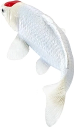 Ta szczegółowo wykonana figurka karpia koi Tancho wyróżnia się białym ciałem z wyraźną czerwoną plamą na głowie. Jest ręcznie malowana tak, aby jak najwierniej oddawać fakturę łusek, płetw oraz realistyczne proporcje. Dzięki wysokiej jakości materiałowi jest wytrzymała i bezpieczna do dziecięcej zabawy i ekspozycji.
