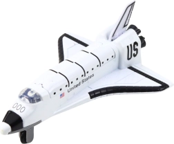 Odkryj zabawę z metalowym wahadłowcem z napędem typu pull-back, który po puszczeniu sam rusza. Realistyczny design wahadłowca, otwierana górna część dla większych scenariuszy zabawy oraz wytrzymałe połączenie metalu i plastiku sprawiają, że ta zabawka to świetny wybór dla małych fanów kosmosu.