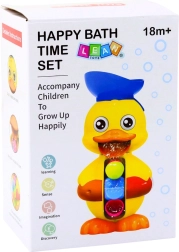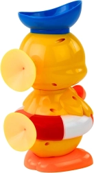 Interaktywna kaczuszka do kąpieli przyciąga dzieci wesołymi kolorami i sprytnym obiegiem wody. Wystarczy wlać wodę do górnego lejka/kapelusika, a dziecko obserwuje, jak oczy się kręcą, dzióbek się otwiera, a strumień wody wprawia w ruch karuzelę na brzuszku. Zabawa, która naturalnie rozwija zmysły, koncentrację i zręczność.