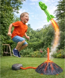 Zabawny zestaw dla dzieci z motywem wulkanu i dinozaurów zachęca do aktywnej zabawy na świeżym powietrzu. Wystarczy nadepnąć na miech, a piankowe rakiety w kształcie dinozaurów wystrzelą w górę. Bezpieczny, miękki materiał, łatwa obsługa oraz wspieranie ruchu i koordynacji sprawiają, że to doskonały prezent dla małych fanów prehistorii.