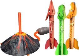 Ten wulkaniczny zestaw wyrzutni zamieni ogród lub park w ekscytujące prehistoryczne boisko. Wystarczy osadzić dinozaurową rakietę na podstawie, nadepnąć na miech i patrzeć, jak wzlatuje wysoko w powietrze. Dzięki motywom T‑Rexa, Triceratopsa i Pterodaktyla dzieci rozwijają fantazję i motorykę.