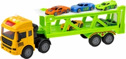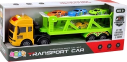 Odkryj pełną akcji zabawę z lawetą, która potrafi przewieźć kilka autek jednocześnie. Dwupoziomowa platforma umożliwia łatwy najazd, załadunek i rozładunek, wspierając tym samym motorykę małą i koordynację ręka–oko. Dzięki przyciskom w kabinie aktywują się światła i dźwięki, które dodają zabawie realizmu.