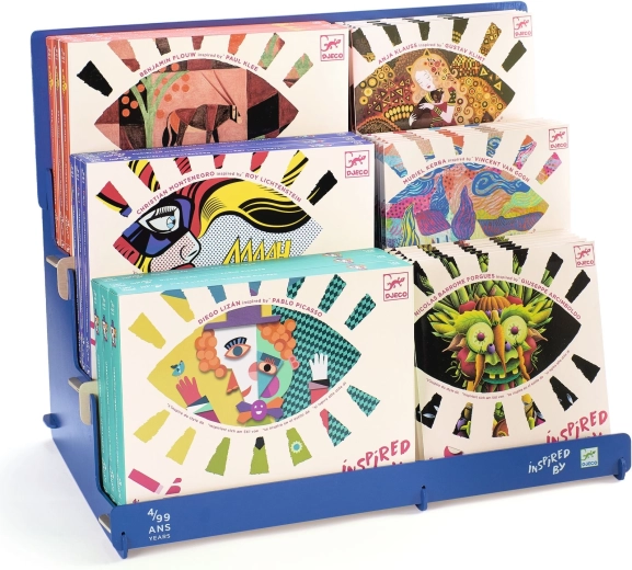 Ten prezentacyjny stojak został zaprojektowany z myślą o eleganckiej ekspozycji produktów z artystycznej kolekcji DJECO Inspired By. Oferuje czyste i atrakcyjne uporządkowanie, które podkreśla design i kolory poszczególnych pozycji oraz wspiera ich sprzedaż.