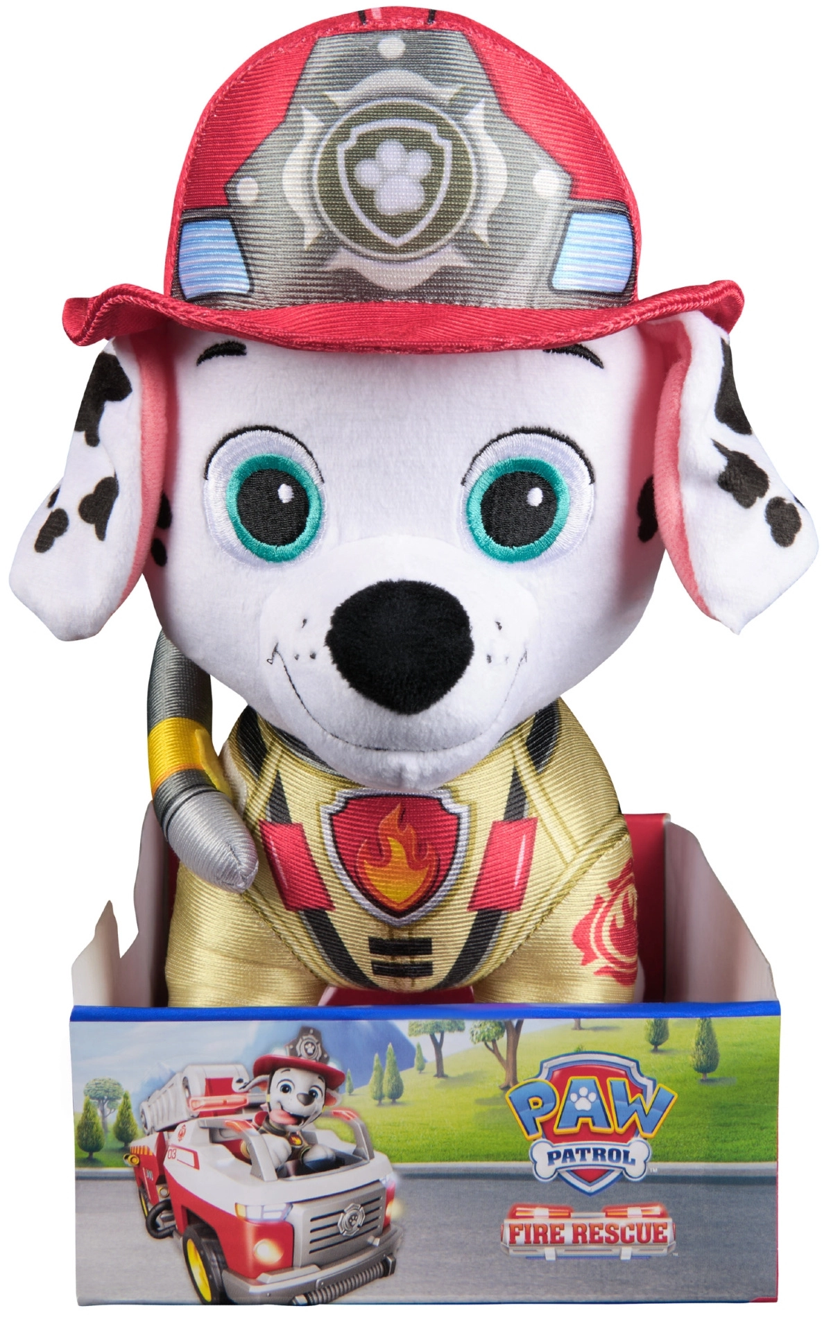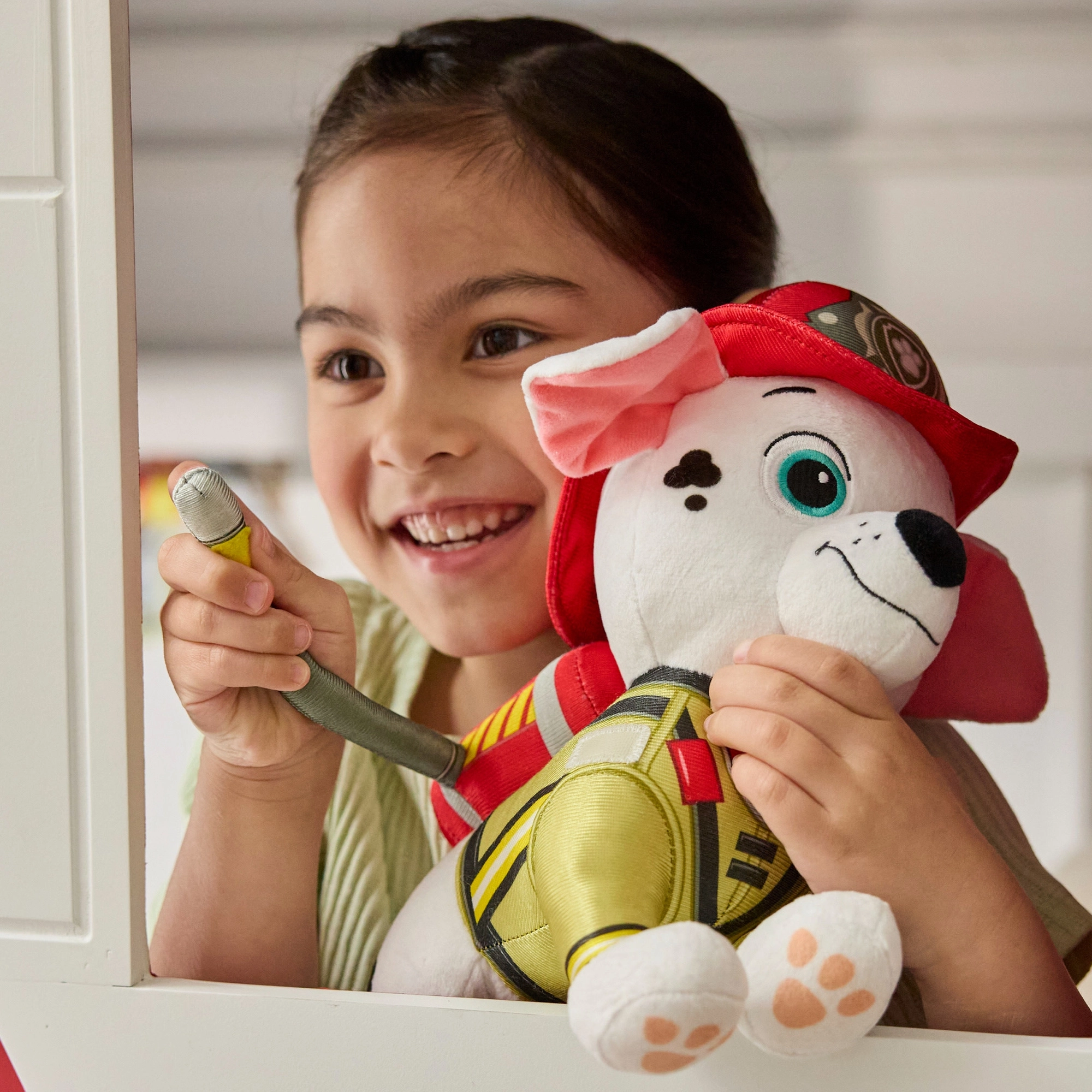 Odkryj uroczo wyglądającego dalmatyńczyka Marshalla w jego charakterystycznym strażackim stroju. Pluszak o wysokości 25 cm stoi na czterech łapach, jest przyjemnie miękki, lekki do dziecięcej rączki i idealny do codziennego przytulania oraz bohaterskich misji ratunkowych.