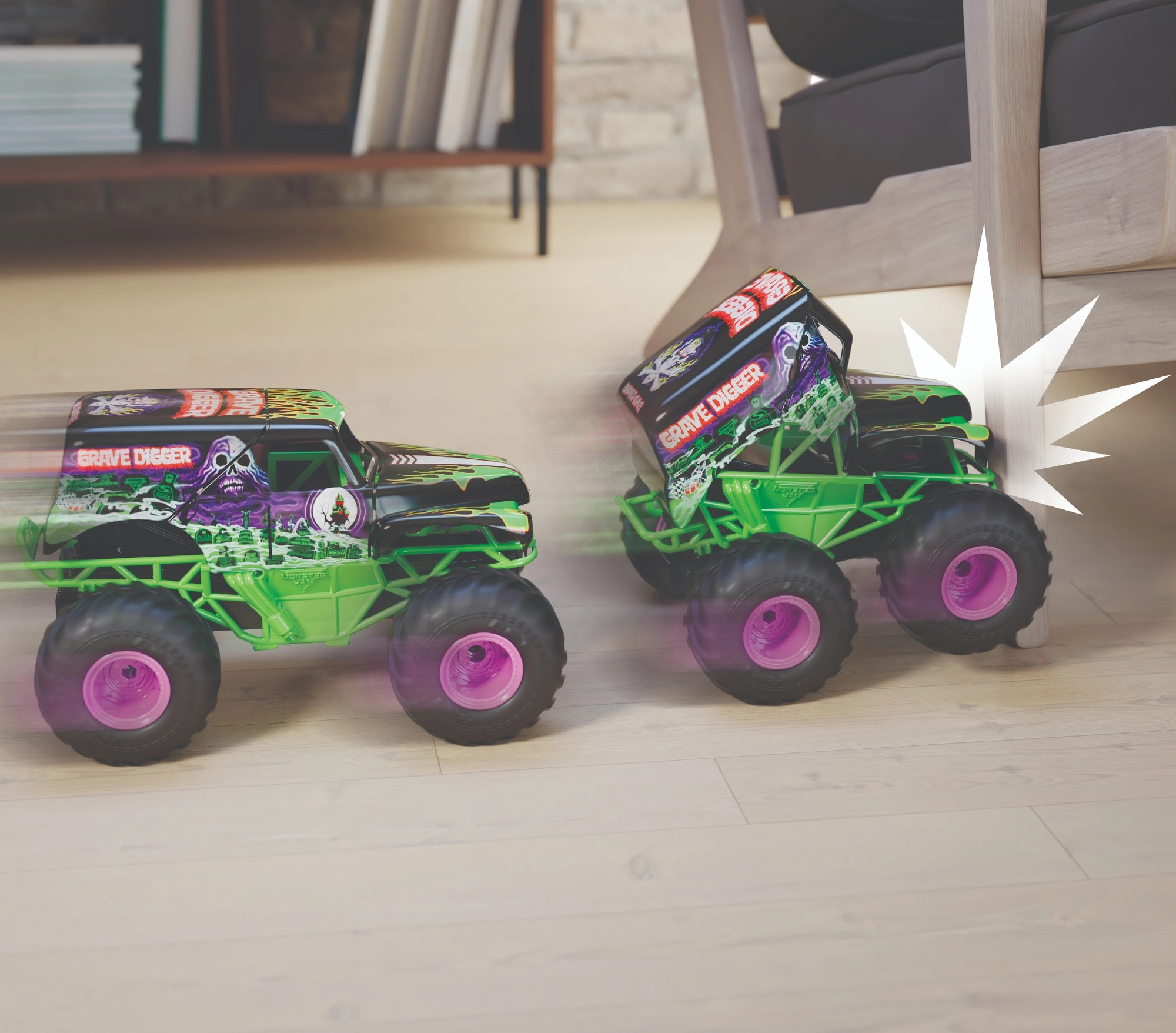 Legendarna ikona MONSTER JAM trafia do Twojej kolekcji: GRAVE DIGGER z charakterystyczną czarno‑zieloną grafiką, ogromnymi oponami i podniesionym podwoziem. Skala 1:15 oferuje świetny kompromis rozmiaru i sterowności, a gumowe bieżniki zapewniają trakcję na asfalcie, dywanie i bardziej chropowatych nawierzchniach.