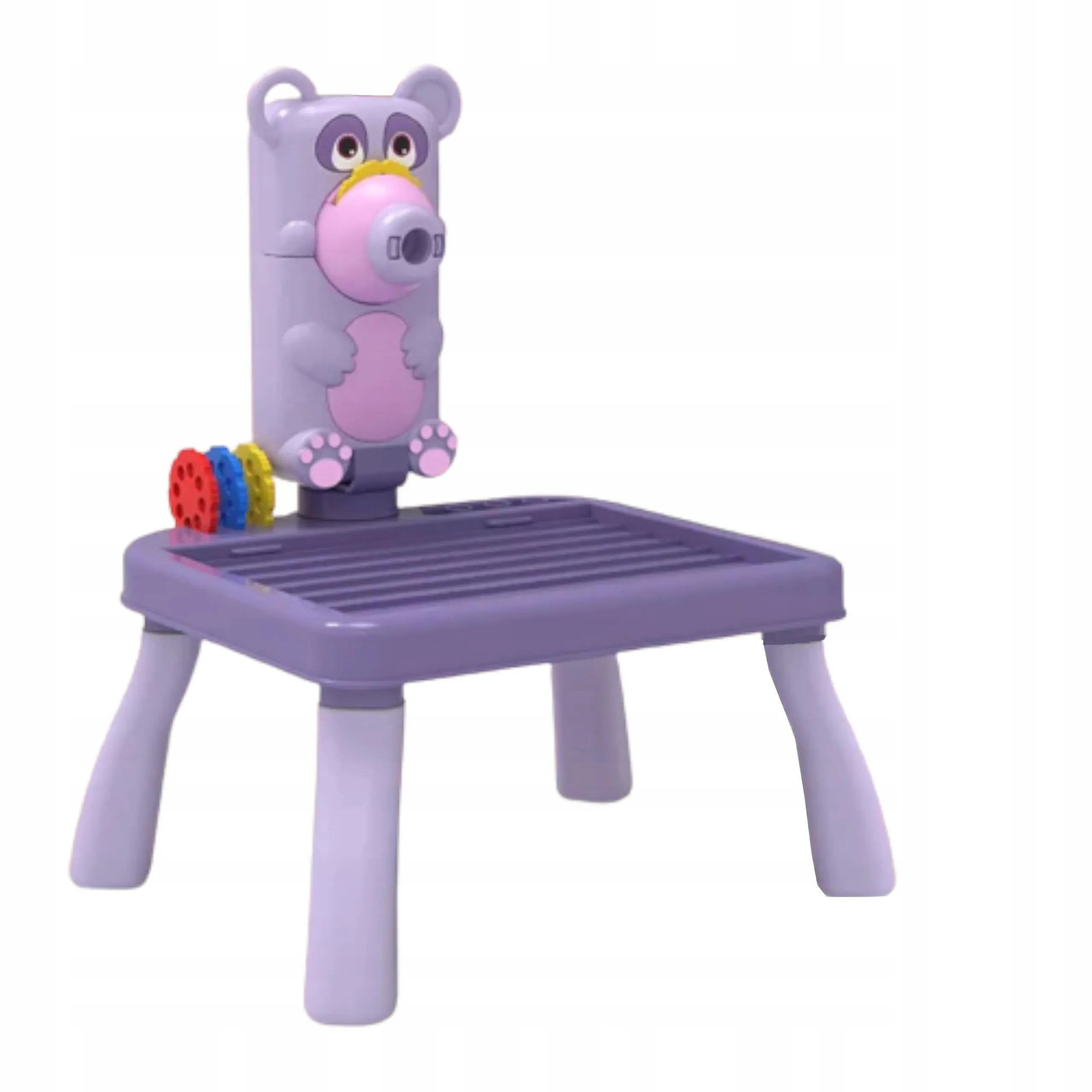 Przegródki na flamastry i krążki, łatwe czyszczenie gąbeczką oraz lekka konstrukcja do przenoszenia sprawiają, że projektor to idealna zabawka w podróż.