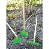 Dziecięca łopata ogrodowa z długim, drewnianym trzonkiem i wytrzymałym zielonym, metalowym ostrzem jest idealna dla małych ogrodników. Wspiera rozwój motoryki, równowagi i relacji z naturą, jest solidna, bezpieczna i doskonale leży w dziecięcej dłoni.